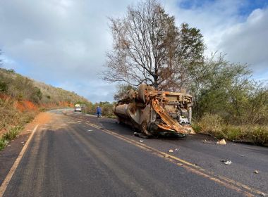 Motorista morre carbonizado após carreta capotar e pegar fogo na BA-026