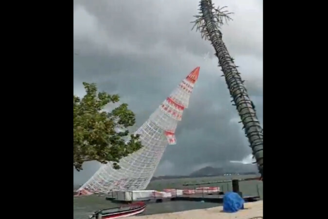 Uma árvore de natal flutuante de 56 metros de altura desabou sobre trabalhadores nesta segunda-feira (16/12) em Maricá, na Região…