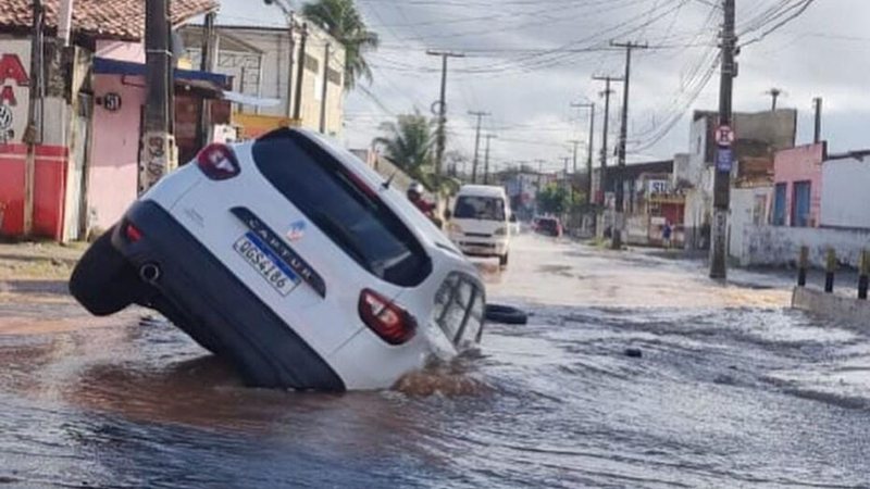 Vídeo mostra momento em que carro é ‘engolido’ por cratera em avenida; assista
