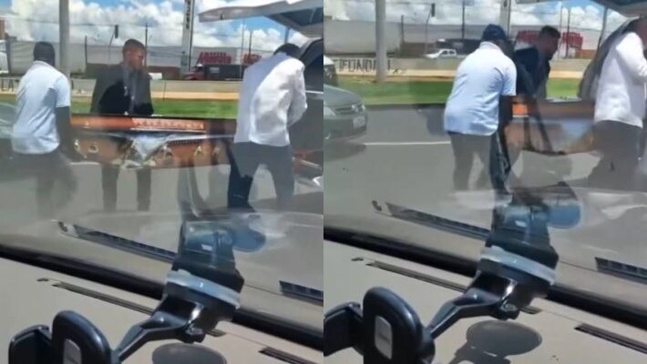 Caixão com cadáver cai no meio da rua em avenida movimentada; veja vídeo