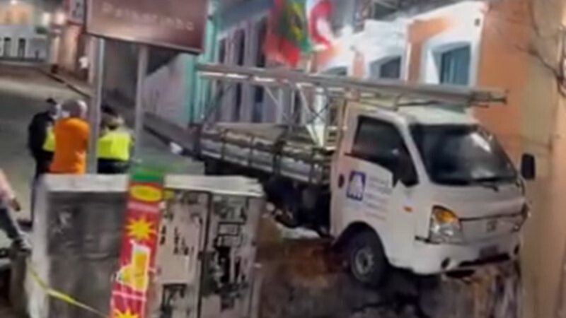 Caminhão derruba famosa mureta no Pelourinho após acidente; assista