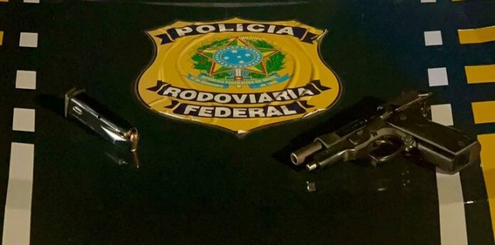 Operação conjunta da PRF e da PCBA resulta na apreensão de arma de fogo e recuperação de carro roubado