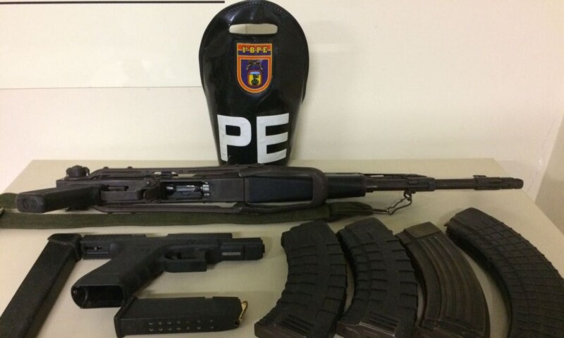 Com os três foram apreendidos duas pistolas, carregadores, munições, rádios comunicadores e porções de drogas.