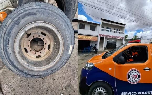 Borracheiro fica gravemente ferido após ser atingido no rosto por pneu de caminhão