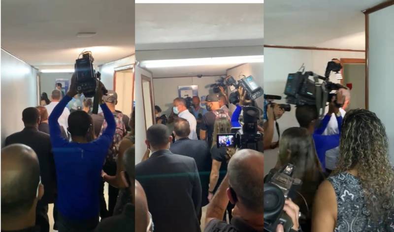 Vacinado, Rui Costa causa aglomeração de jornalistas e assessores