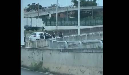 Suspeito armado troca tiros com polícia após roubo de veículo; veja vídeo