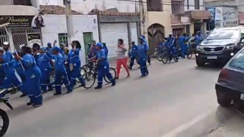 Vídeo: Trabalhadores da limpeza pública protestam por salário atrasado em Santo Amaro