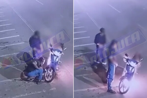 Moto pega fogo e dupla tenta apagar chamas com a própria urina; veja vídeo