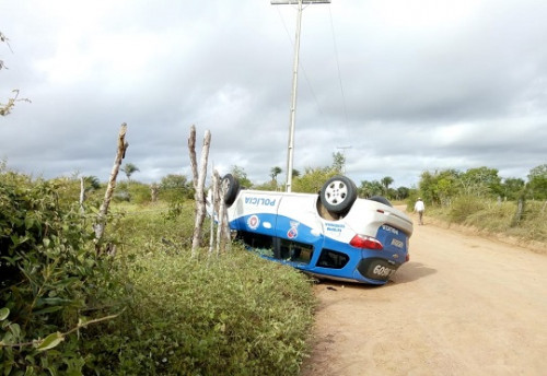 Viatura com policiais militares capota na BA-414 entre São José do Jacuípe e Santaluz