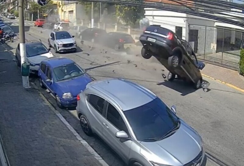 VÍDEO: Caminhonete capota e atinge dez carros; Veja o momento do acidente