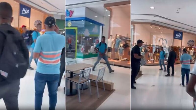 VÍDEO: Briga generalizada termina em soco e ameaça de faca dentro de shopping em Salvador