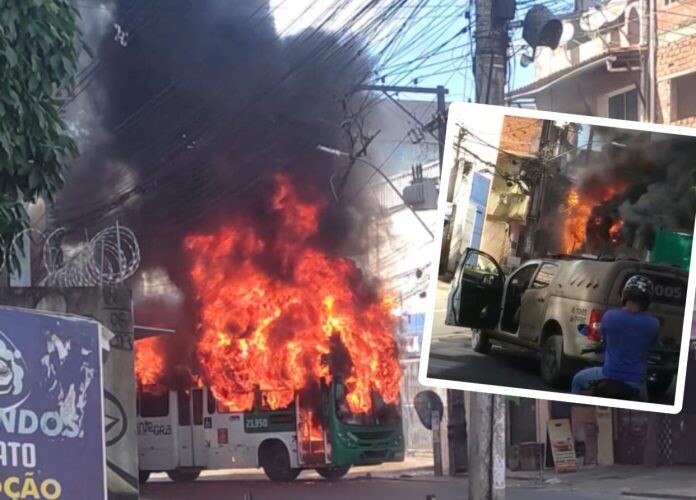 ESTRADA DAS BARREIRAS: Traficantes tocam fogo em ônibus após morte de comparsa